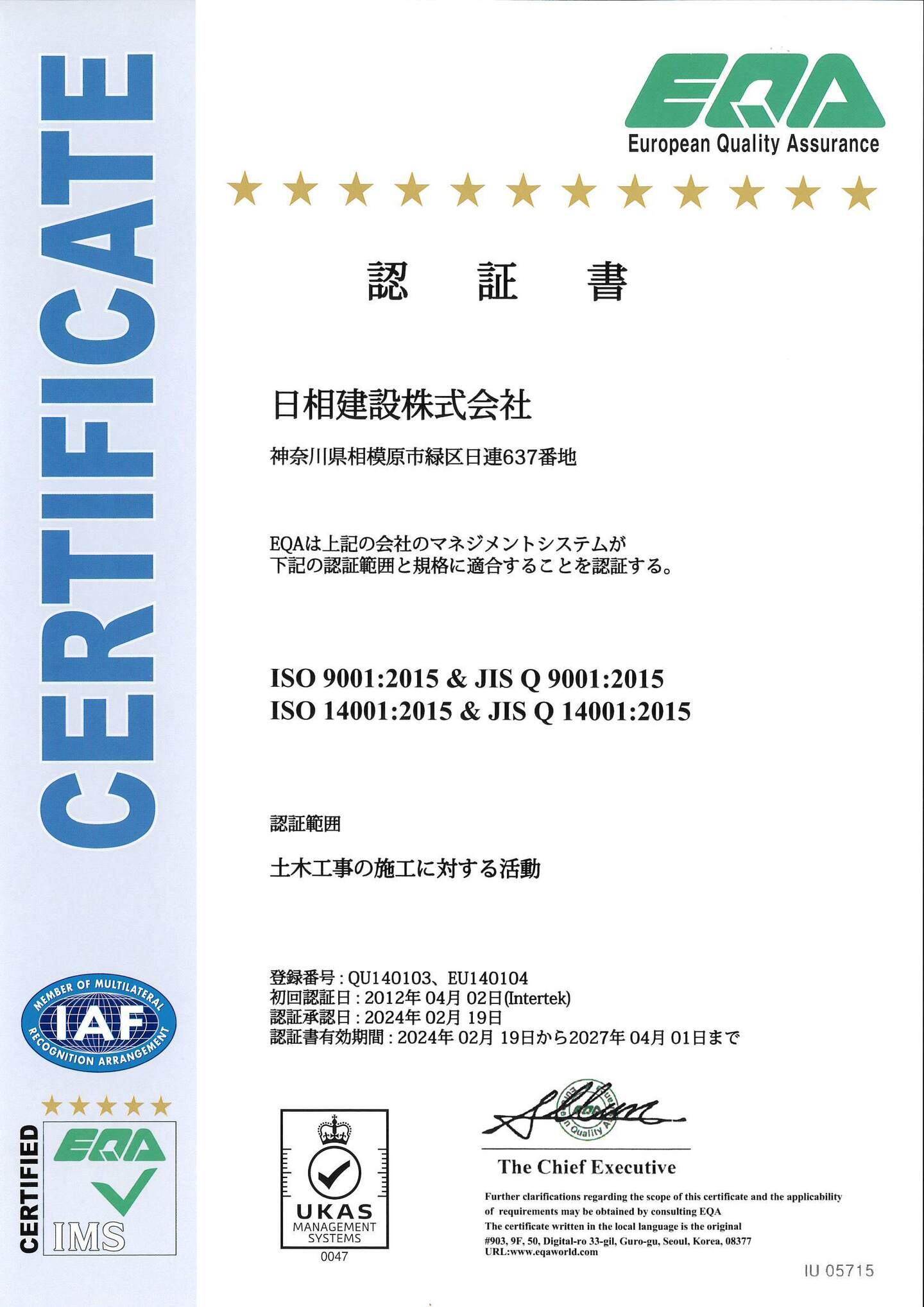 認証取得済のISO14001の自主運用を行っています。