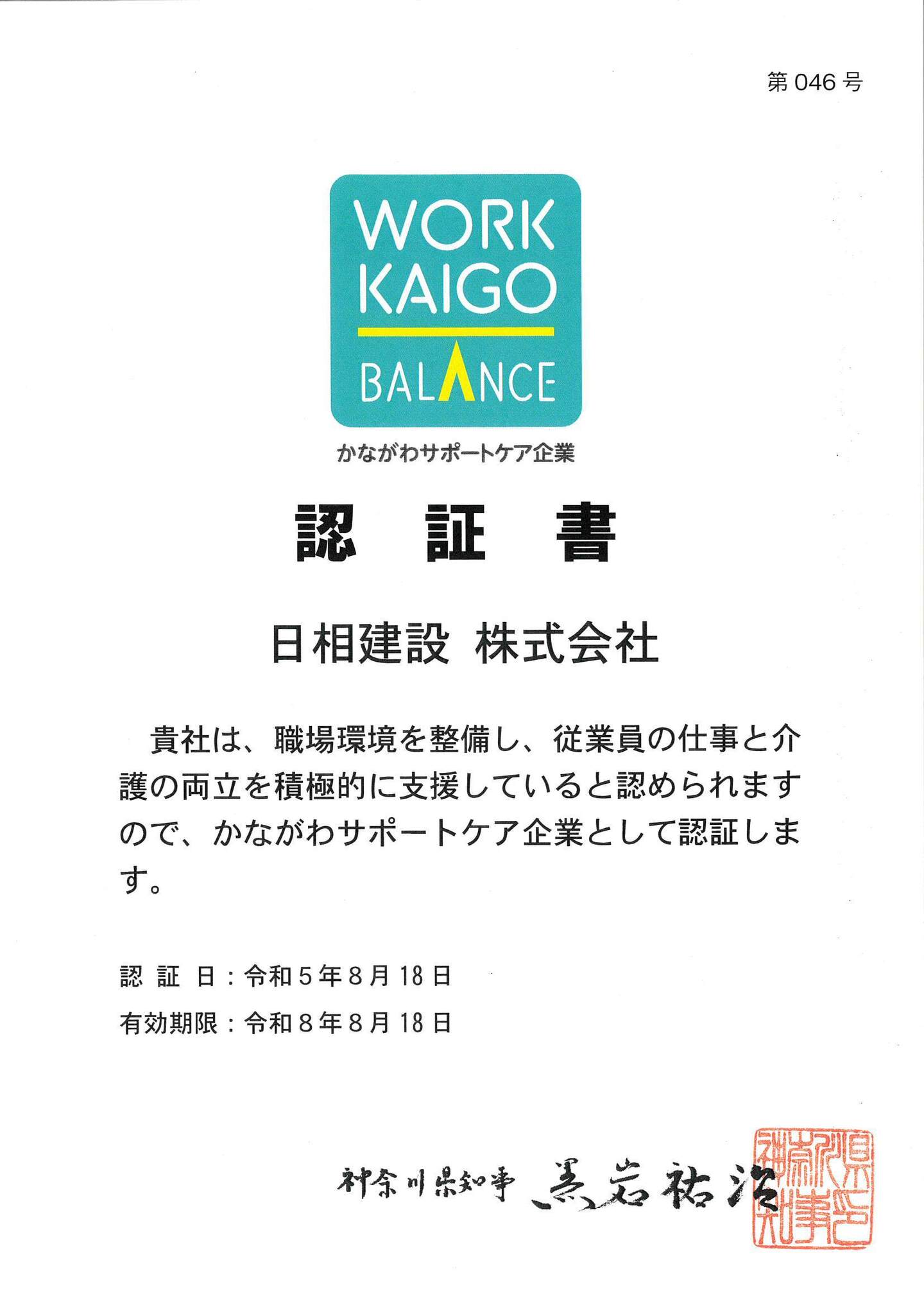 かながわ障害者雇用優良企業として認証して頂いてます。
